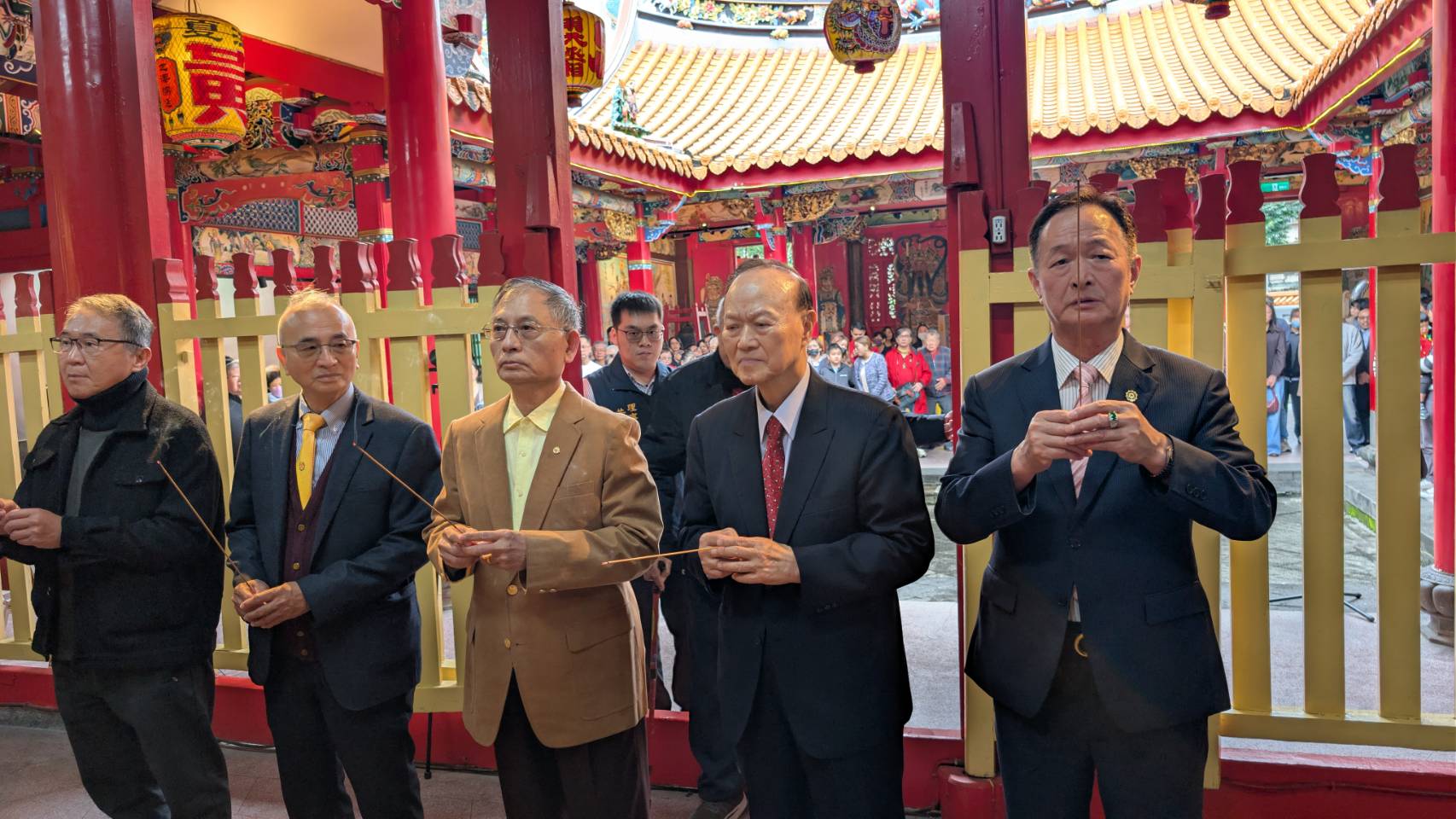 ↑國曆115年2月17日台北江夏黃種德堂大宗祠、台北市黃氏宗親會、台北市文甲黃姓崇德會三會聯合辦理新春團拜。現場亦敬邀財團法人台北市艋舺龍山寺黃書瑋董事長、台北市義勇消防大隊長黃奕郎宗長共同祭祀種德堂堂上黃氏歷代先賢。